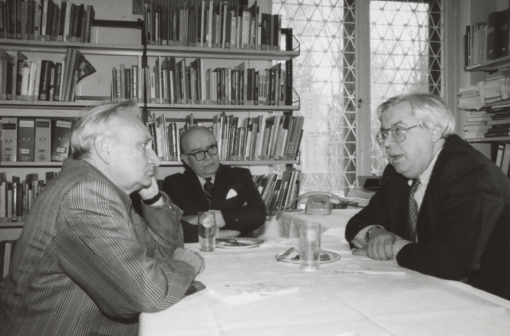 In 1993, OSCE Ambassador of the USA John Kornblum and US Ambassador Jonathan Dean met with the Institute Director Egon Bahr at the IFSH (from right to left).