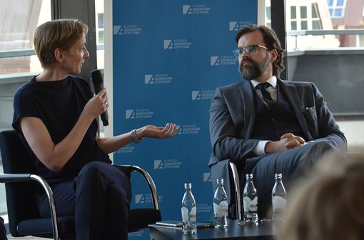 Prof. Dr. Ursula Schröder in conversation with PD Dr. Frank Sauer (Universität der Bundeswehr München). (c) Konrad Adenauer-Stiftung