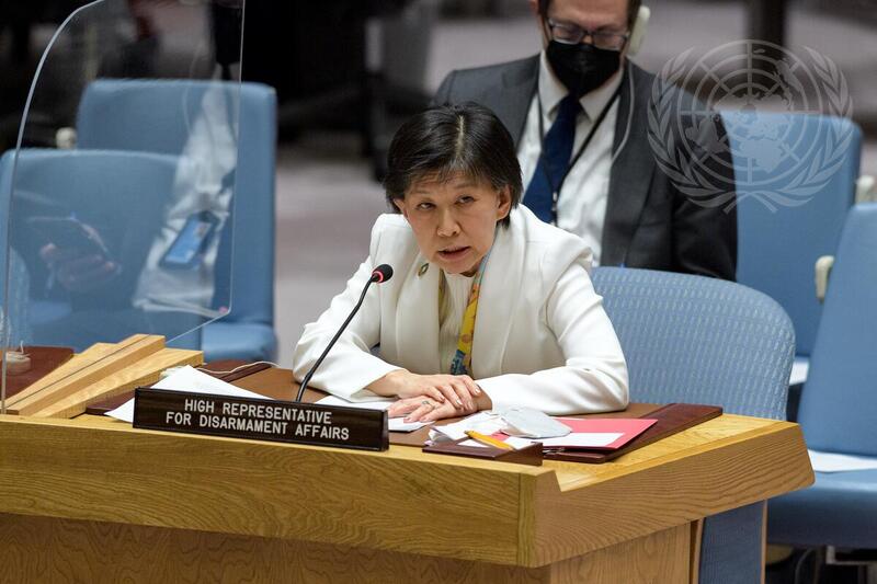 Izumi Nakamitsu, High Representative for Disarmament Affairs, briefs the Security Council meeting on threats to international peace and security. | (c) UN Photo/Manuel Elías