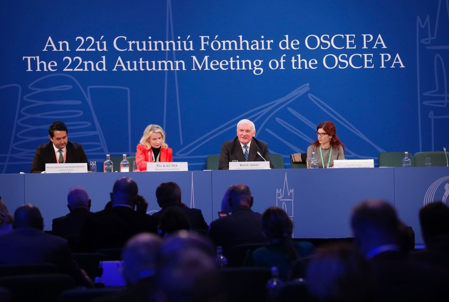 On 2 October, Dr Argyro Kartsonaki addressed the 22nd Autumn Meeting of the OSCE Parliamentary Assembly in Dublin. Speaking at the first session of the meeting, "The OSCE's Conflict Cycle: Dialogue Facilitation, Conflict Resolution, Mediation Support, Conciliation and Post-Conflict Rehabilitation", Kartsonaki focused on the role of international actors in conflict resolution and dialogue facilitation in secessionist conflicts. Kartsonaki stressed the importance of involving women in all stages of the peace process and the necessity to address the needs of youth in any conflict context.