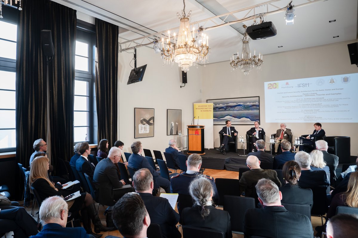 Die aktuelle geopolitische Lage ist so gefährlich wie selten zuvor. Mitten in Europa tobt ein Angriffskrieg und die USA, jahrzehntelang verlässlicher Bündnispartner und Sicherheitsgarant, drohen ihre Militärhilfen einzustellen. Die europäischen Regierungen müssen dringend handeln, um die Ukraine im Kampf gegen den Aggressor Russland weiter zu unterstützen und den Frieden im restlichen Europa zu bewahren. Große Herausforderungen also, die den Kontinent zwingen, sich sicherheits- und verteidigungspolitisch neu aufzustellen. Wie wichtig es ist, bei der Gestaltung dieser neuen europäischen Sicherheitsarchitektur die baltischen Staaten miteinzubeziehen, machte nun eine internationale Konferenz in Berlin deutlich. Zu der Veranstaltung eingeladen hatten die Akademie der Wissenschaften in Hamburg, die Akademien der Wissenschaften Estlands, Lettlands und Litauens und die Vertretung der Freien und Hansestadt Hamburg in Berlin in Zusammenarbeit mit dem IFSH. Unter dem Titel „Aktuelle und zukünftige Sicherheitsarchitektur für die baltischen Staaten und Europa“ kamen rund 70 Expert:innen aus Wissenschaft, Diplomatie und Politik zusammen. Sie beendeten die Konferenz mit einer gemeinsamen Stellungnahme und konkreten Handlungsempfehlungen für die Politik.