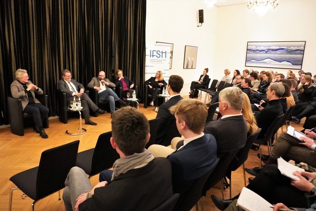 Zum ersten Mal wird Deutschland eine Nationale Sicherheitsstrategie bekommen. Die im Koalitionsvertrag der Bundesregierung festgeschriebene Strategie wird abstecken, wie sich Deutschland künftig im Bereich Sicherheit nach innen und außen aufstellen wird. Das IFSH nahm die bevorstehende Veröffentlichung zum Anlass, um am 27. Februar zu einer hochkarätig besetzten Diskussionsveranstaltung in die Landesvertretung Hamburgs beim Bund einzuladen. Rund 80 Gäste waren der Einladung gefolgt und hörten mit Interesse den Ausführungen der Expert:innen zu. Unter der Moderation der Leiterin des Berliner IFSH-Büros Anja Dahlmann beleuchteten sie das Vorhaben aus verschiedenen Blickwinkeln.