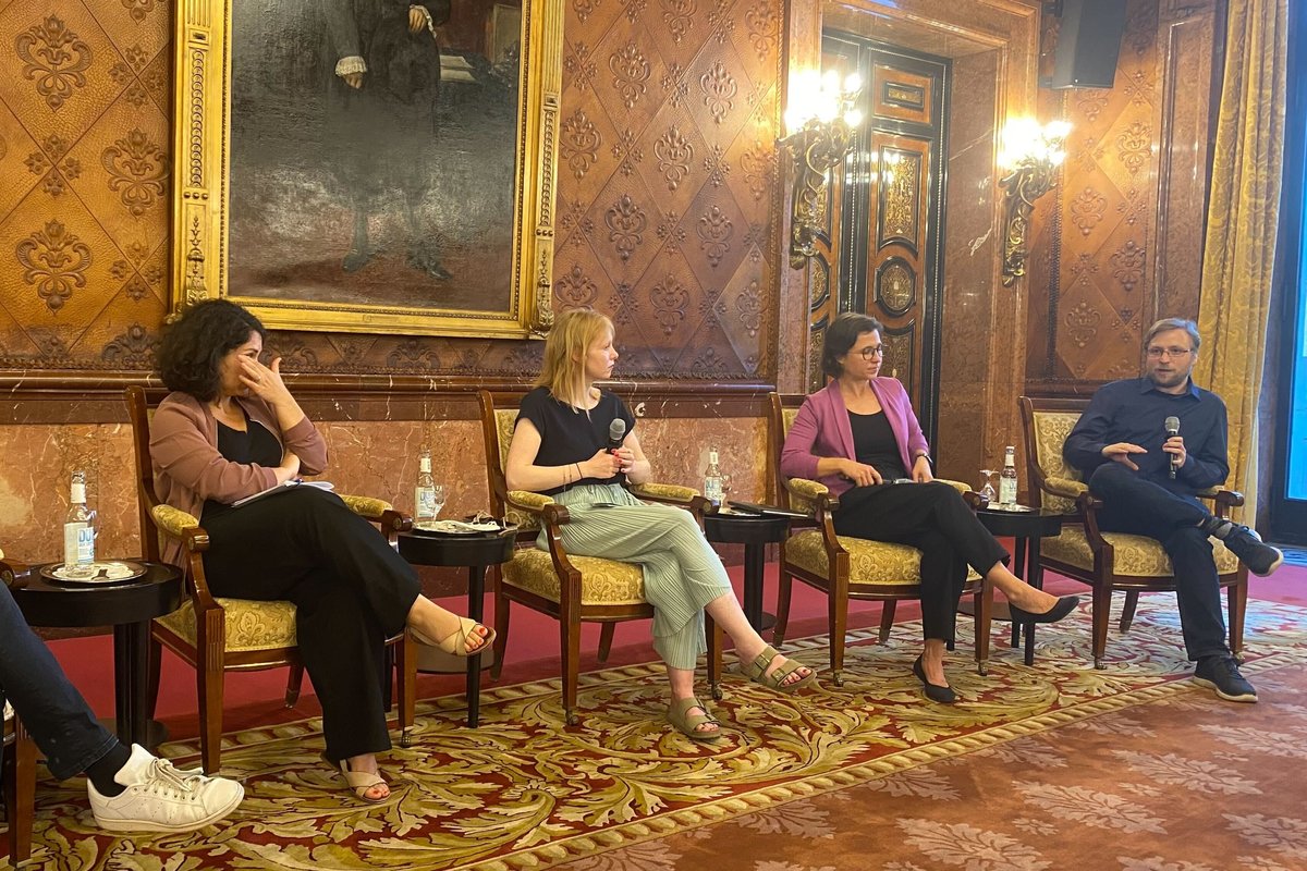 Anfang Mai hatte die Hamburger Bürgerschaftsfraktion Bündnis 90/Die Grünen interessierte Bürger:innen zu einer Podiumsdiskussion in den Kaisersaal des Hamburger Rathauses eingeladen. Das Thema: Rechtsextremismus in Europa. Auf dem Podium saßen Stephen Albrecht, Rechtsextremismusforscher und wissenschaftlicher Mitarbeiter im Projekt NEOVEX am IFSH, Nissar Gardi, Bildungsreferentin bei Arbeit und Leben e.V., Hannah Neumann, Abgeordnete der Grünen/Freie Europäische Allianz im Europäischen Parlament, und Andreas Speit, Rechtsextremismusexperte, Journalist und Publizist. Moderiert wurde die Veranstaltung von Alske Freter, Abgeordnete der Grünen-Fraktion in der Hamburgischen Bürgerschaft.