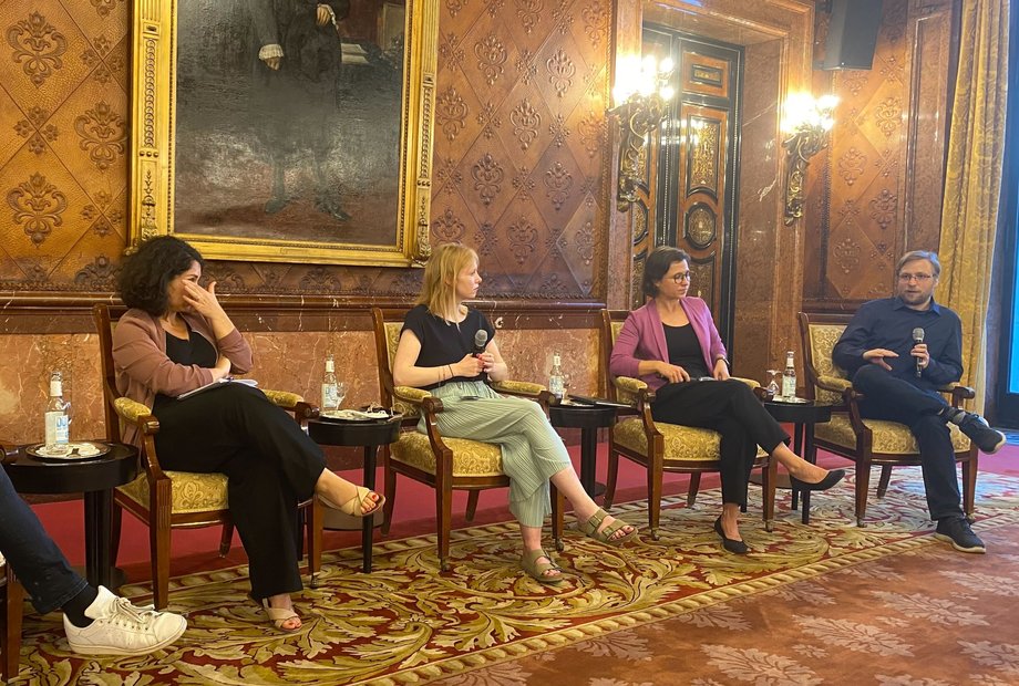 Ein zentrales Thema war die zunehmende transnationale Vernetzung rechtsextremer Parteien in Europa. Trotz dieses beunruhigenden Trends wurden aber auch die internen Spannungen und Risse innerhalb dieser Gruppen thematisiert, insbesondere ihre Haltung zu Russland und dem russischen Einmarsch in die Ukraine. Alle Expert:innen auf dem Podium waren sich allerdings einig, dass sich diese Uneinigkeiten kaum in den Umfragewerten der europäischen Rechten widerspiegeln würden. Denn rechtspopulistische und rechtsextreme Parteien seien sehr geschickt darin, interne Probleme herunterzuspielen und auf bekannte Feindbilder umzulenken.