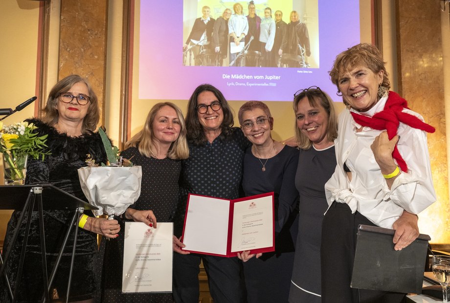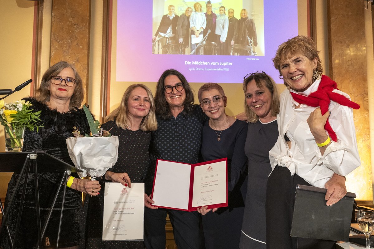 Kunstschaffende Forschungspartner:innen des IFSH sind im November 2025 mit dem Hamburger Literaturpreis ausgezeichnet worden. Das Künstlerkollektiv „Mädchen vom Jupiter“ erhielt den Preis in der Kategorie „Drama und Experimentelles“ für das künstlerisch-dokumentarische Projekt „Verbotene Gefühle in Zeiten des Krieges“. Seit Herbst 2023 haben sieben Frauen aus der Ukraine, Russland und Deutschland in Interviews persönlichen Gefühlen zu den Folgen des russischen Angriffskriegs nachgespürt. Diese Gefühle, die oft im Verborgenen bleiben, haben sie anschließend in Form einer Lesung in drei Sprachen für die Bühne inszeniert. Drei der Mitglieder des Kollektivs – die aus Moskau stammende Drehbuch- und Theaterautorin Nana Grinstein, die Kyiwer Journalistin Nataliia Reznichenko sowie die in Kasachstan aufgewachsene Hamburger Künstlerin Julia Zeichenkind – sind aktuell als alltagsweltliche Forschungspartner:innen im IFSH-Forschungsprojekt „Räume des Friedens“ von Dr. Regina Heller aktiv. Das Projekt untersucht Erfahrungen von Migrant:innen aus dem postsowjetischen Raum in Deutschland, deren Leben durch die russische Aggression gegen die Ukraine beeinflusst wurde. Dabei bezieht es Nicht-Wissenschaftler:innen und Wissenschaftler:innen in die gemeinsame Forschung und Wissensproduktion mit ein.