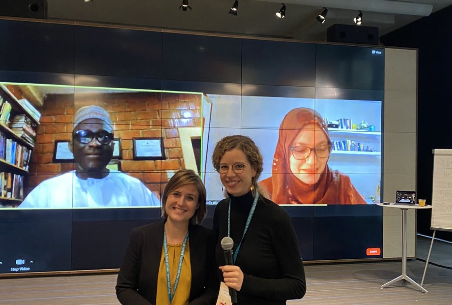 Viktoria Budde vom IFSH und Dr. Karoline Eickhoff von der Berghof Stiftung präsentierten beim Workshop zum Thema „Trust in Security and Rule of Law Partnerships“ die Zwischenergebnisse ihres gemeinsamen Forschungsprojektes zu diesem Thema. Unterstützt wurden sie dabei von Saleh Bala, einem ehemaligen nigerianischen General, und Shadia Marhaban, einer Friedensmediatorin aus Indonesien, die ihre eigenen vielseitigen Erfahrungen vorstellten.