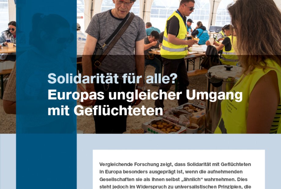 Flüchtlingen aus der Ukraine hat die Europäische Union das Ankommen deutlich leichter gemacht als jenen aus anderen Kriegsgebieten. So hat sie etwa für ukrainische Kriegsflüchtlinge die rechtlichen Hürden für Aufenthaltsgenehmigungen, Beschäftigungsmöglichkeiten und Bewegungsfreiheit innerhalb der EU gelockert. Auch die Hilfsbereitschaft für diese Gruppe von Geflüchteten ist in den europäischen Gesellschaften weiterhin groß. Doch überdeckt diese Solidarität, dass die Werte, auf denen die liberale Demokratie und damit nicht zuletzt auch die europäische Identität gründet, Politik und Gesellschaft dazu anleiten sollten, keine Unterschiede in der Behandlung von Geflüchteten zu machen. Denn der Schutz vor Verfolgung ist ein Menschenrecht, auf das alle gleichermaßen Anrecht haben.
