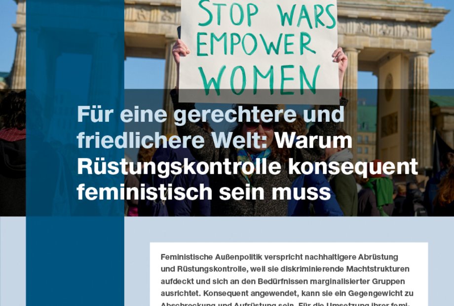 Das Auswärtige Amt hat im Jahr 2023 zehn Leitlinien für eine feministische Außenpolitik formuliert. Ziel ist es, Frauen und andere marginalisierte Gruppen mehr in die Außenpolitik einzubeziehen und deren Rechte zu stärken. Feministische Prinzipien sollen laut Auswärtigem Amt auch in der deutschen Rüstungskontrollpolitik zur Anwendung kommen. Hier sind sie allerdings noch nicht deutlich genug ausformuliert und wurden in der Praxis bislang nur halbherzig umgesetzt. Dies gilt beispielhaft sowohl für den Bereich der Atomwaffen als auch für neue Technologien wie Künstliche Intelligenz in Waffensystemen.