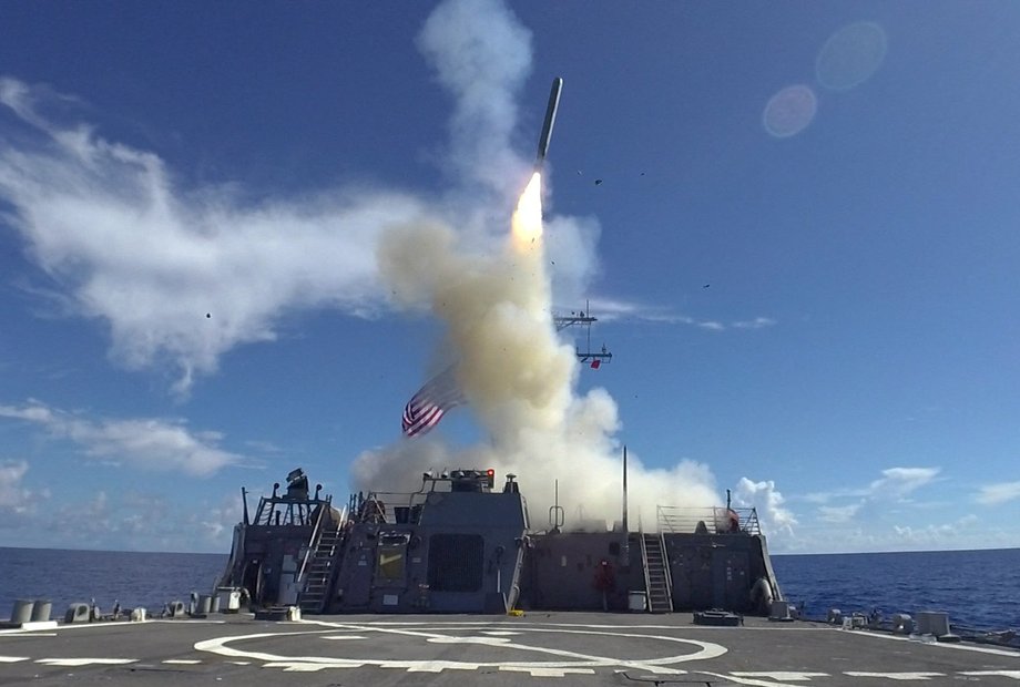 Abschuss einer Mittelstreckenrakete des Typs Tomahawk von einem US-Zerstörer im Jahr 2023. © dpa Picture Alliance | abaca