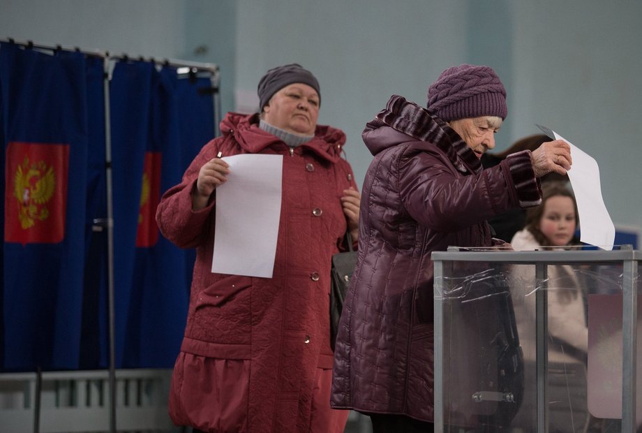 Zwei Russinnen bei ihrer Stimmabgabe in einem Wahllokal in St. Petersburg. (c) dpa Picture Alliance / ZUMAPRESS | Igor Russak