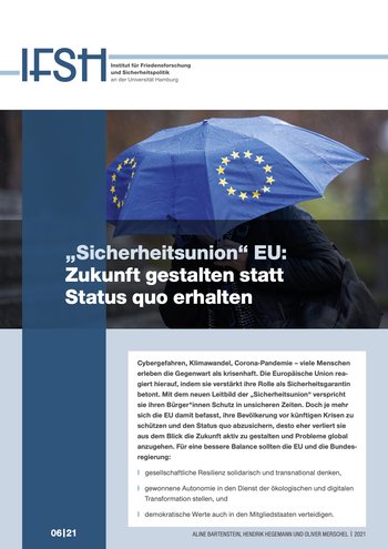 In regelmäßigen Abständen gibt das IFSH ein vierseitiges Kurzdossier heraus, den IFSH-Policy Brief. Jede Ausgabe widmet sich jeweils einem aktuellen sicherheitspolitischen Thema. Kurz und bündig stellen die Autoren komplexe wissenschaftliche Sachverhalte verständlich aufbereitet dar. Denn der IFSH-Policy Brief richtet sich speziell an einen nicht-wissenschaftlichen Leser:innenkreis, insbesondere an Journalist:innen und Politiker:innen.