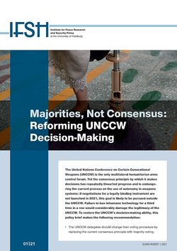 The United Nations Conference on Certain Conventional Weapons (UNCCW) is the only multilateral humanitarian arms control forum. Yet the consensus principle by which it makes decisions has repeatedly thwarted progress and is endangering the current process on the use of autonomy in weapons systems: if negotiations for a legally binding instrument are not launched in 2021, this goal is likely to be pursued outside the UNCCW. Failure to ban inhumane technology for a third time in a row would considerably damage the legitimacy of the UNCCW. To restore the UNCCW’s decision-making ability, this policy brief makes the following recommendation: